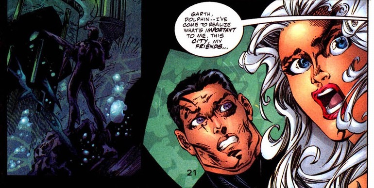 But now the comparisons arise once more: Mera says some really mean things in the next dozen pages while Aquaman works tirelessly to keep her from hurting herself and the man she loves.