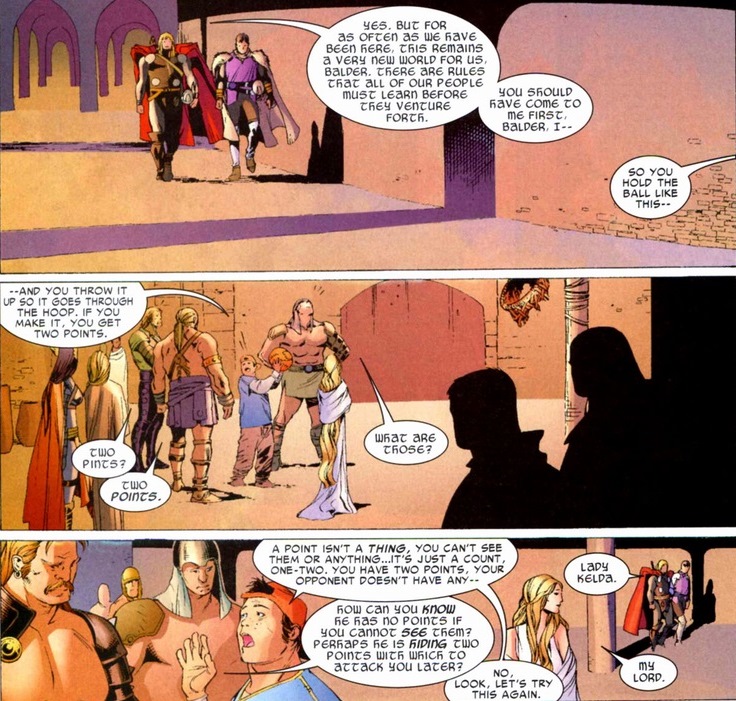As Kelda mentioned during their late night chat, this is for many Asgardians the first time they’ve had to chance to chat with a human. Fish out of water humor and whatnot.