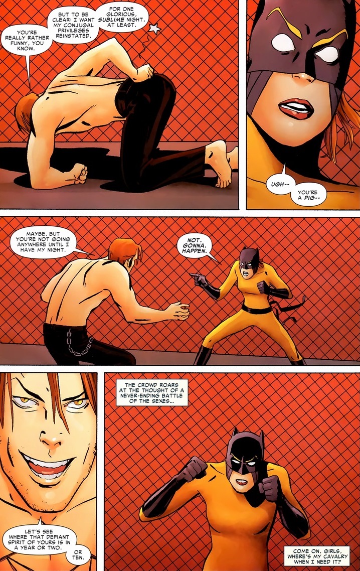 We end today with the couple’s final scene in the arc a few issues later. It’s just as emasculating and somewhat touching as you expect it.