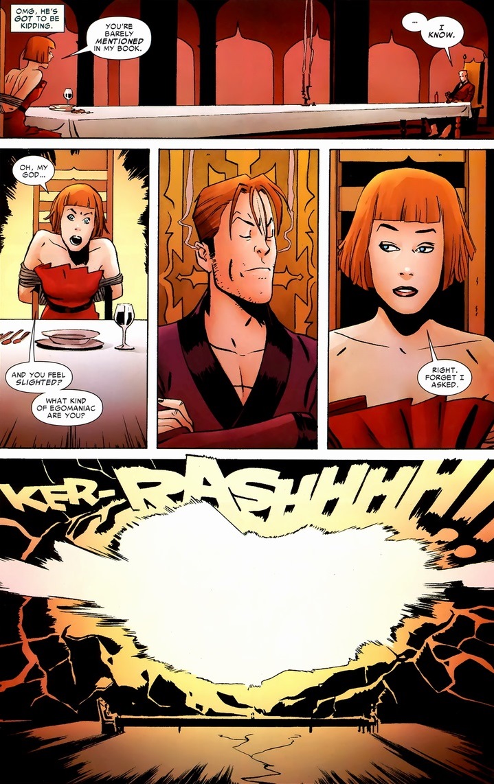 Look, Hellstrom’s not a total creep. The two’ll go on a date first, where they can reminisce and banter about days past. Or future, considering Hellcat’s now trapped in Hell for an eternity. For the third time I’ve shown you. Cue the ol’ Hellstrom charm: