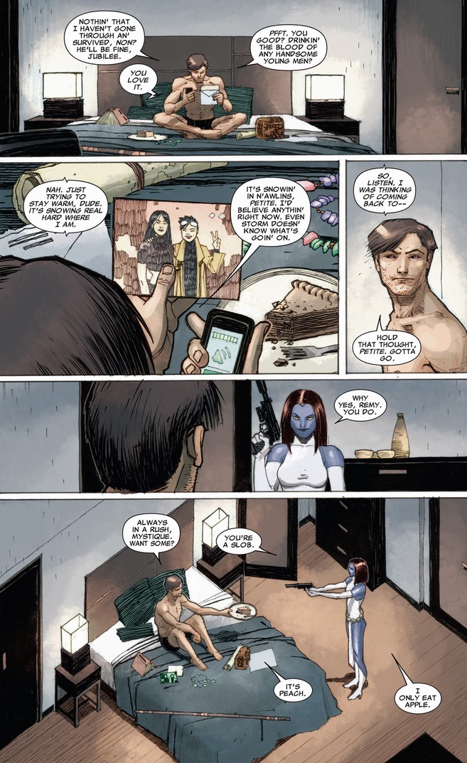 While the next scene doesn’t really advance the narrative, you want to see Mystique fight Gambit?