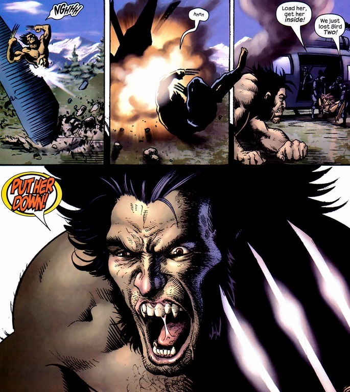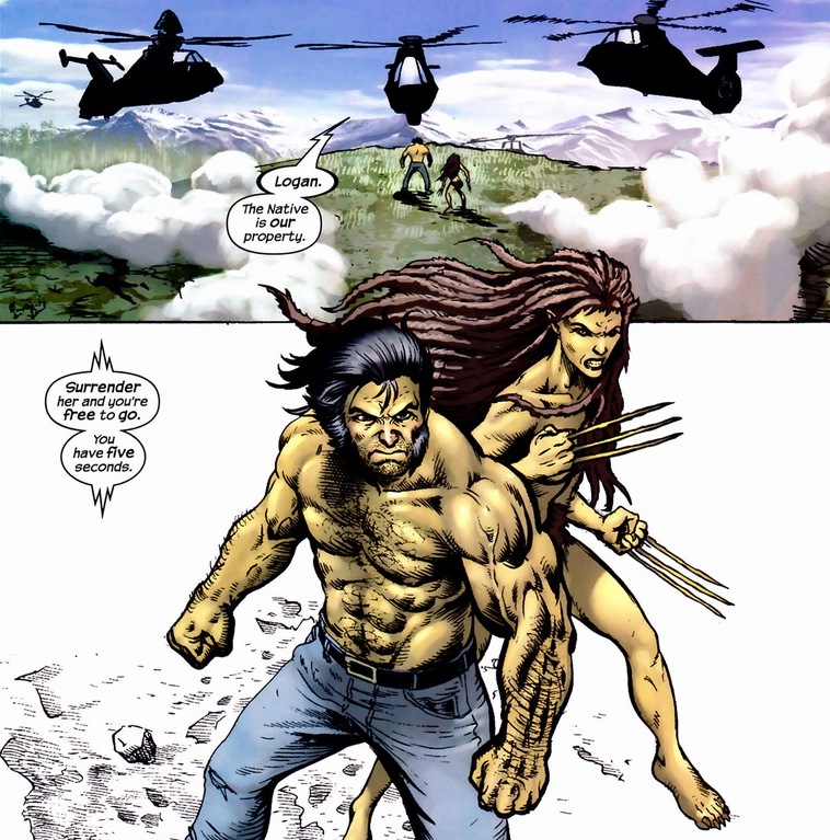 See? A female Wolverine! A failed Weapon X experiment currently more animal than man, which of course, means Wolverine has only possible option: