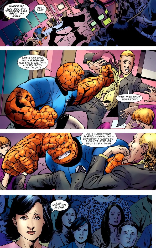 The following two pages give Ben more of a beating than any number of Doctor Dooms could ever hope. Y’know, because it’s an emotional dressing down on live TV.