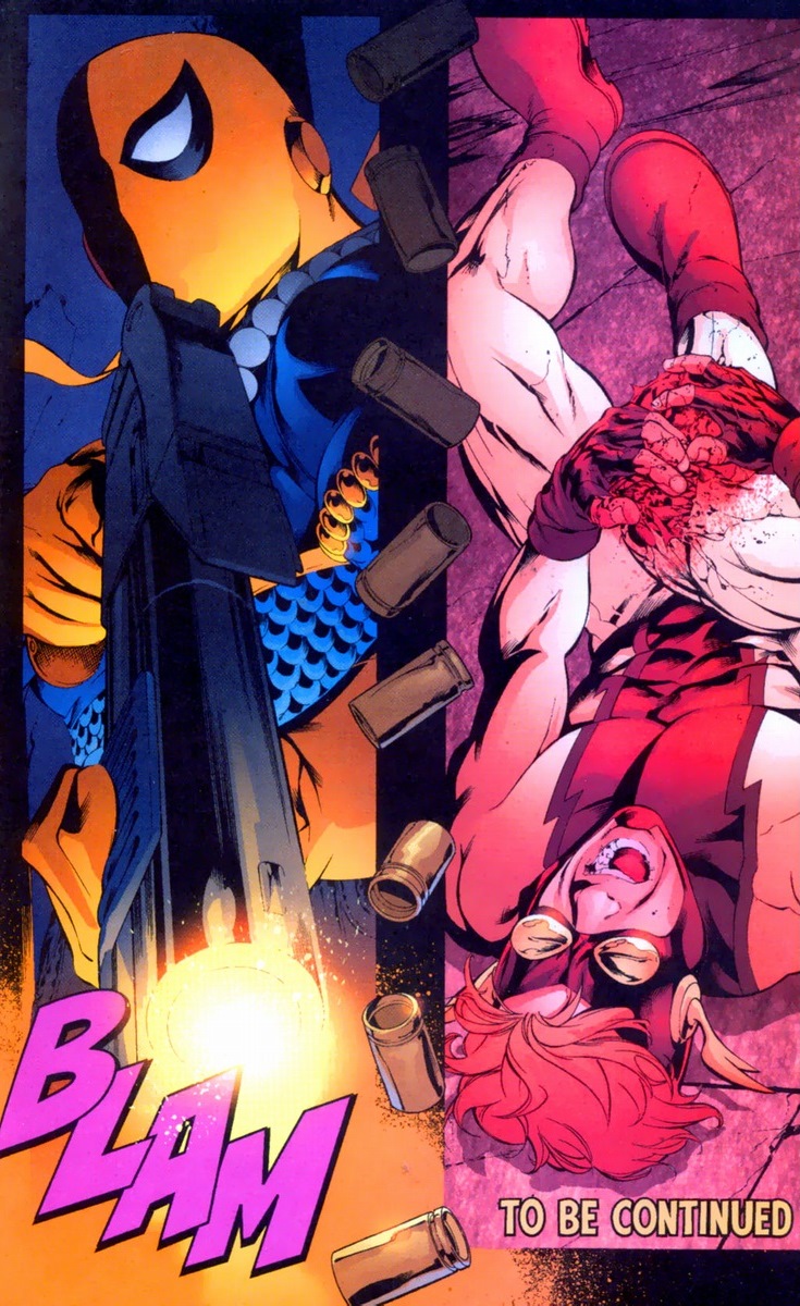 The Teen Titans’ arch-nemesis Deathstroke is an old man. His hair is white and he rocks full facial hair. Yet he spends his time battling teenagers, like the ultimate elderly dude yelling at kids about stepping on his lawn. Sure, he occasionally blows off kneecaps and slices people open with swords, but we can’t forget that he loses constantly to superheroes with a median age of 15.