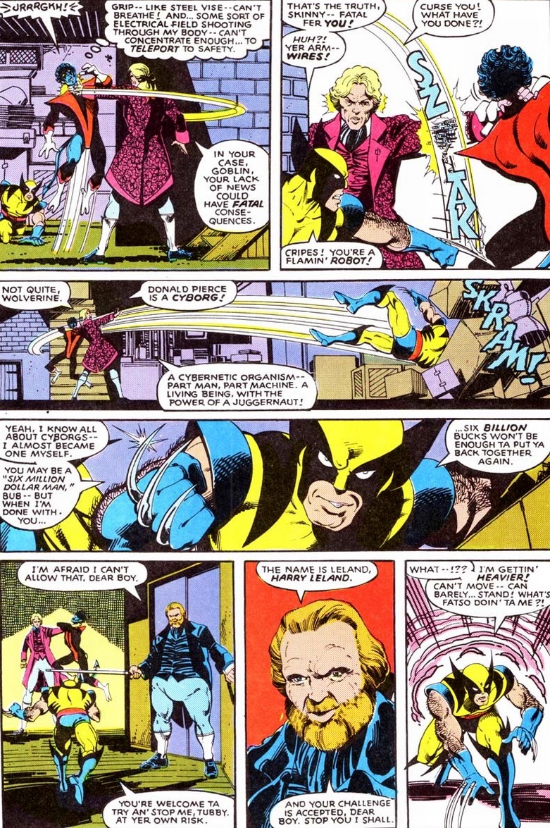 On a related note, Jean Grey premieres as Dark Phoenix in this same arc. She’s the redhead in the dominatrix outfit on the far left. Still, only Wolverine would bust into the room wearing henchmen like scarves, giving the X-Men that vital distraction to begin round two. I love that little man.