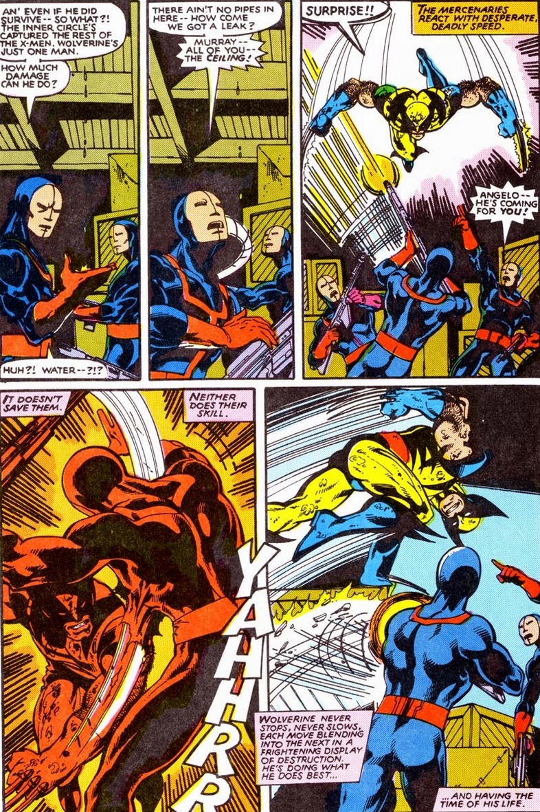 Full disclosure: Wolverine never actually solos the Hellfire Club. Not even close. Actually, he gets his butt kicked almost immediately upon reaching them. But the lead up ranks among one of the great Wolverine moments, just for the sheer pants-wetting honesty he delivers to the poor henchmen who cross his path. Though he first has to slash some of them up.