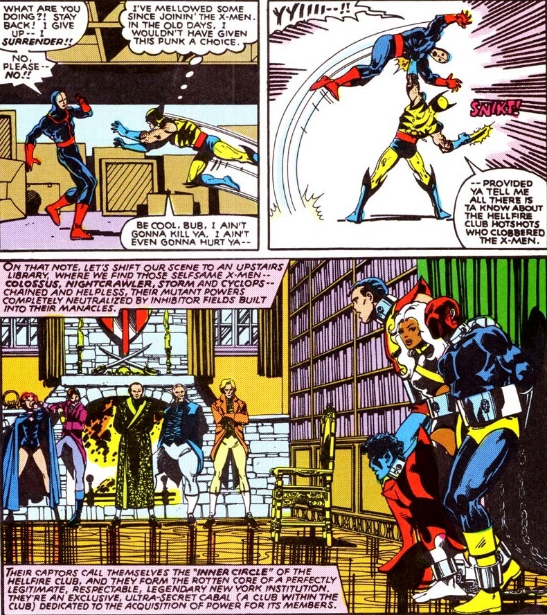 The Hellfire Club, a secret organization of billionaires and other high society folks who enjoy pummeling X-Men — as some rich folks enjoy yachting or fine caviar, these socialites instead prefer to wreck superheroes — attacked our heroes and destroyed them. A bad guy’s credibility depends on an initial success.