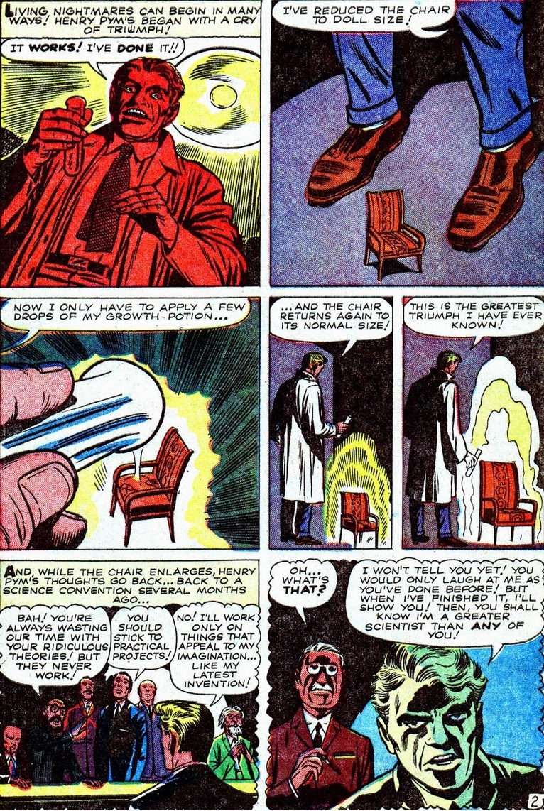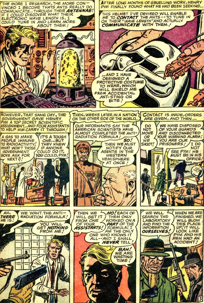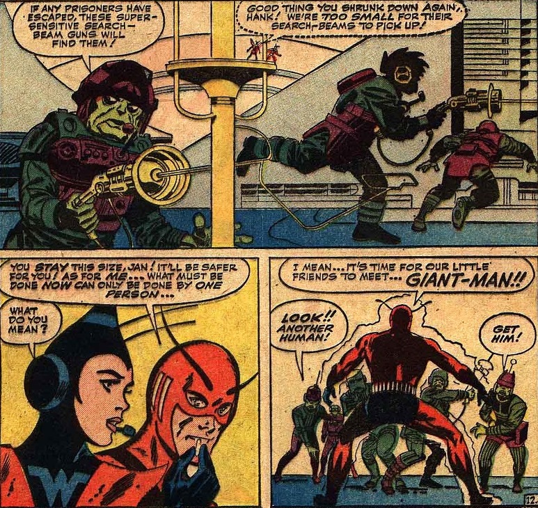 Before he became a superhero, his adventures started the normal way: accidentally shrinking himself and fleeing from killer ants. Though if you’ll notice, his self-esteem issues and mental instability seeds are thoroughly planted for later sprouting even in his first appearance:
