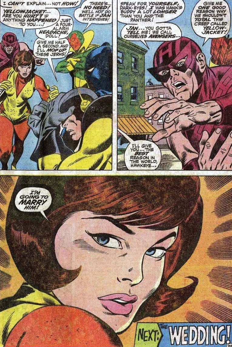 It’s revealed next issue that Wasp figured out Pym was suffering from schizophrenia the whole time (due to the scientific reason of a chemical spill). But to readers, we just saw a random jerk claiming he killed Wasp’s boyfriend, snatch her to a deserted pervert den, sexually assault her, and she responds by immediately pulling a massive Stockholm Syndrome all within the span of four pages. The 1960s were a weird time for comics.