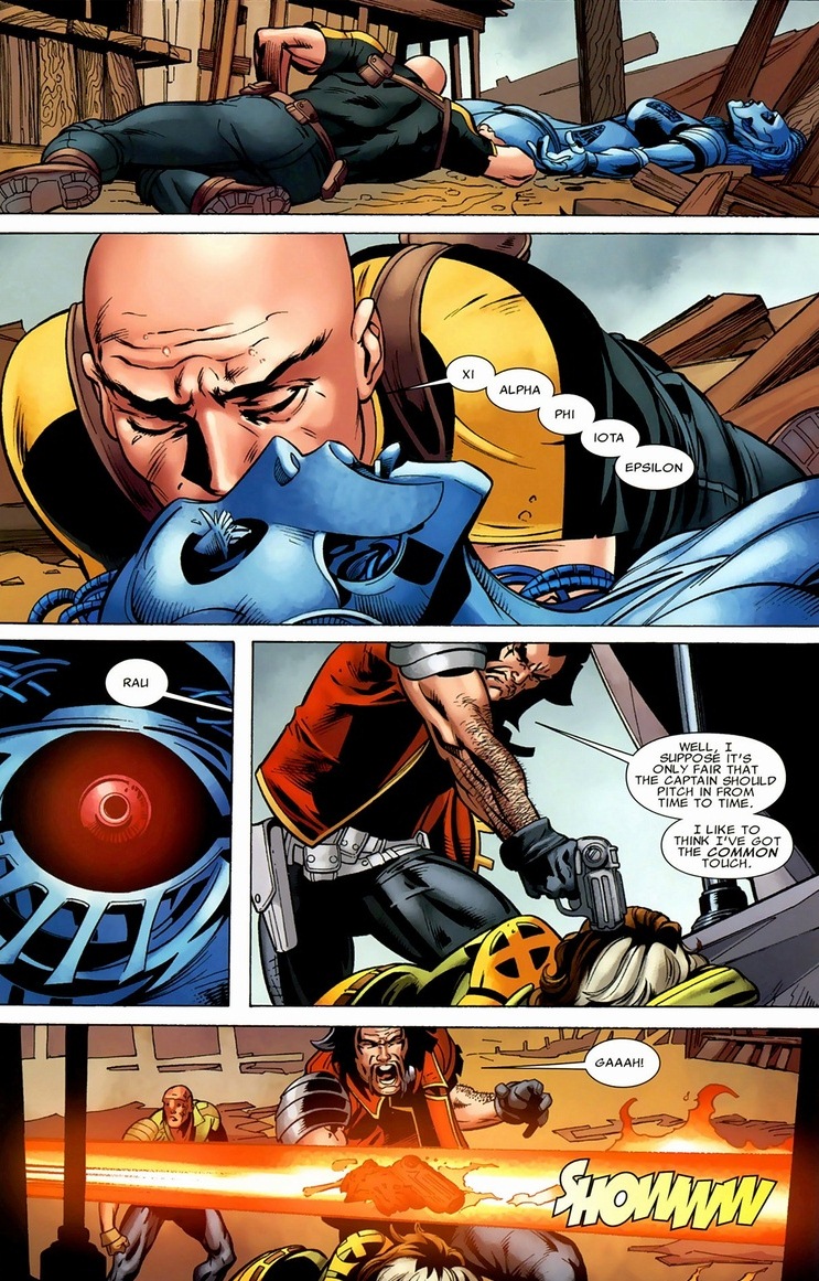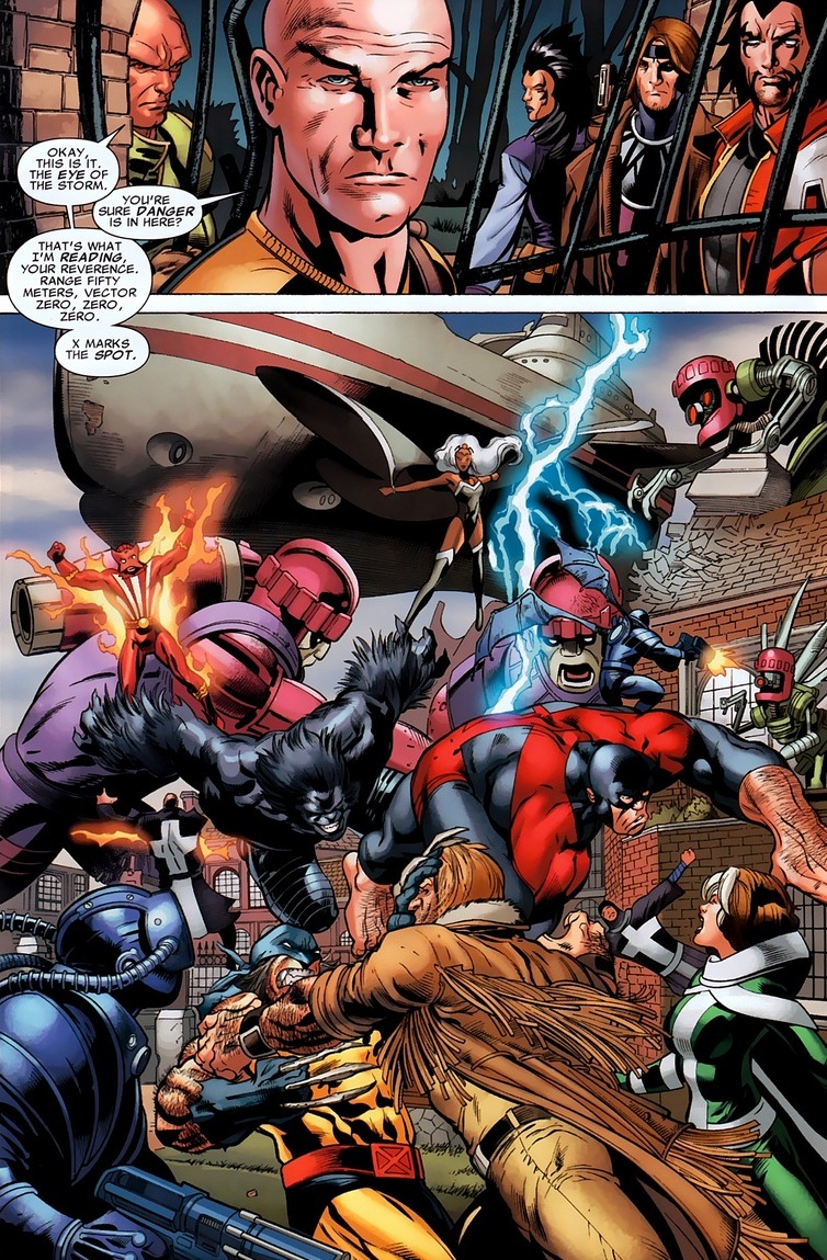 So stuff happens. Eventually, those aliens betray our heroes and take down all three superheroes and Danger. Right as the situation becomes its bleakest, Professor X plays his trump card. Turns out being the founder of the X-Men gave him some special privileges, like Danger Room override codes.
