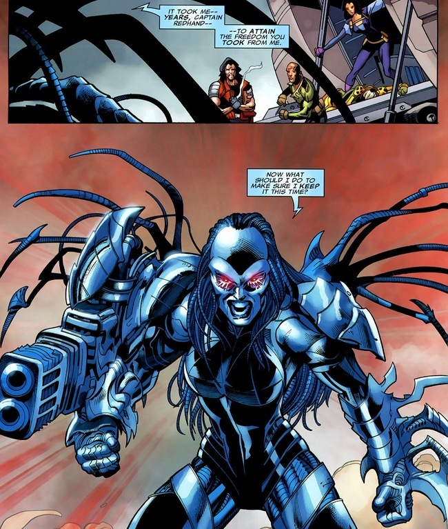 Remember Friday’s article? The Punisher saw his family resurrected by the Hood’s blood magic and immediately torched them along with Microchip’s son. Well, his wife stopped, dropped, and rolled fast enough to make it out, rightfully pissed at her former husband’s actions. This might come back to haunt him. Oh, and if the scarred, enraged dead wife of your arch-nemesis shows up at your doorstep one day, no better way to get back at the Punisher than this: