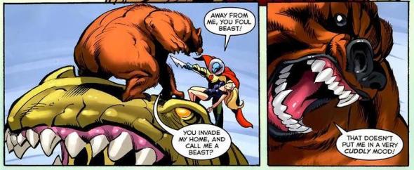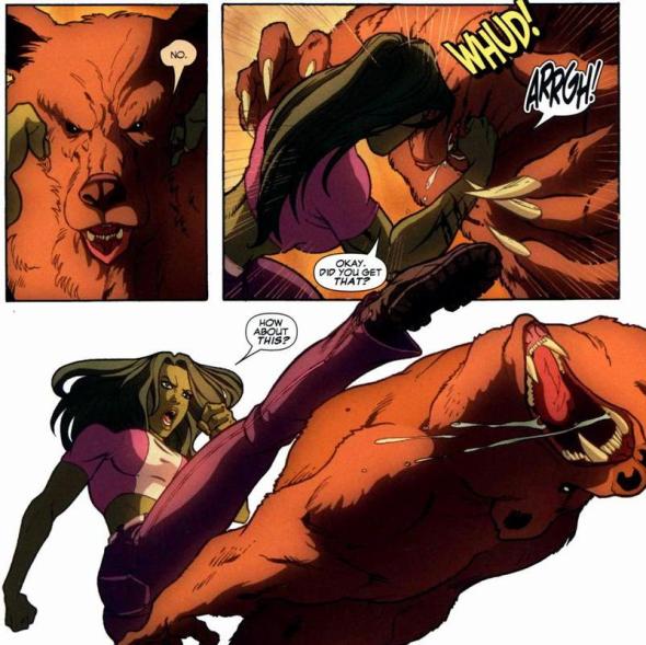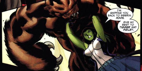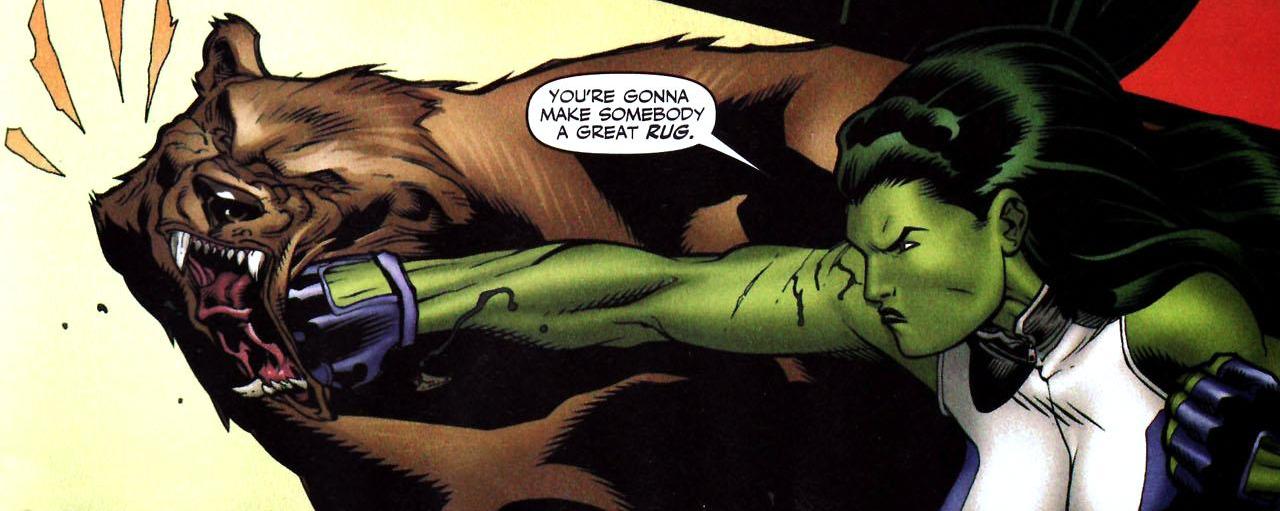 Fairly safe to say that his bragging may need to be tempered a tweak. Now it’s not that he’s a terrible character or an awful fighter. But when the series is called She-Hulk and you come lumbering up to smack her in the face, odds are not in your favor. And despite the Animorph abilities of Russia’s finest, there’s really not much you can do with Ursa Major. Will his bear strength be enough to take out the bad guys? I hope so, because that’s his only angle. He’s a fun character to have in an issue or two, but how many environmental terrorists or evil park rangers can he really fight? At least Beast is a super genius.