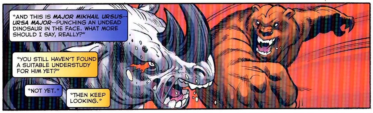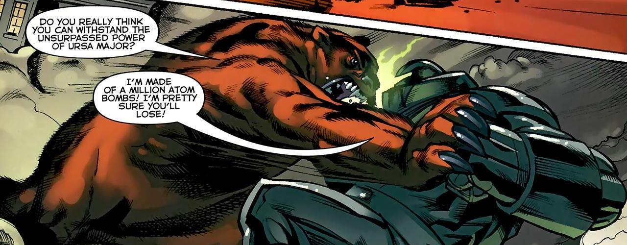 About that. I don’t mind trash talk on the battlefield or the basketball court. It usually makes everything way better anyway. Except Ursa Major is making a bold claim. Sure, he’s a crazy foreign bear monster. Yeah, he’s gone up against some powerful foes. But always wins? Hell, Superman constantly gets superpowers made up just for him and he still gets frequently outwitted by the Donald Trump of the DC universe.